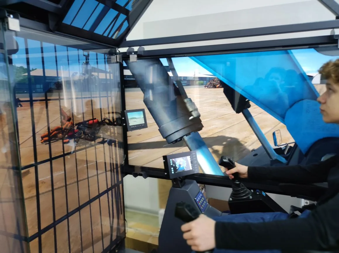 Тренажер мостового крана предназначен для машинистов крана, оснащен тремя мониторами, экранами, манипуляторами управления крюком и мостом, а тренажер перегружателя используется для отработки навыка перевалки лома. В нем есть педали, манипуляторы, кнопки, переключатели - всё, как в кабине машиниста.