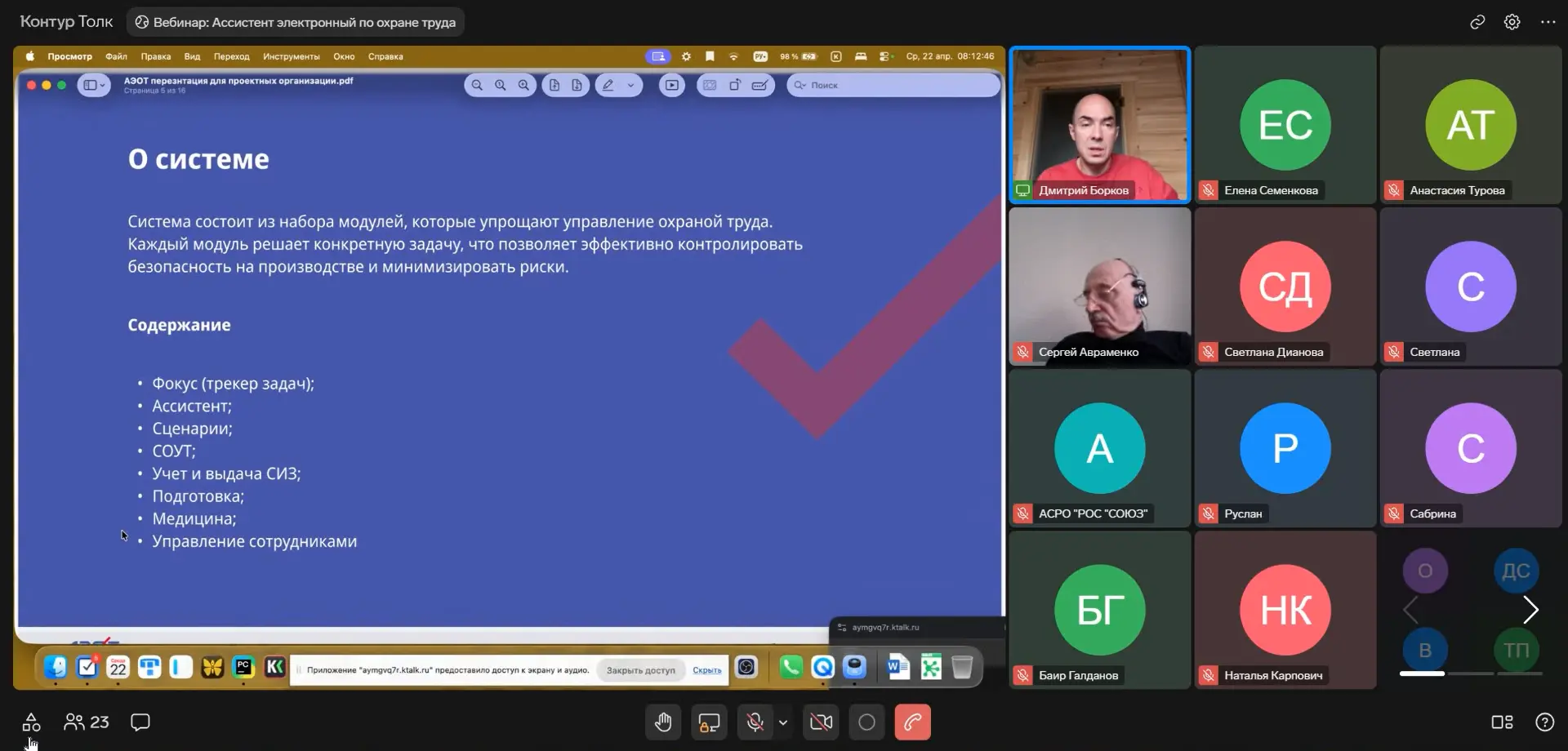 В ходе встречи разработчики представили функционал продукта «Ассистент электронный по охране труда» (АЭОТ). Решение создано при поддержке НОСТРОЙ и ориентировано на цифровизацию и автоматизацию процессов охраны труда в строительных организациях.